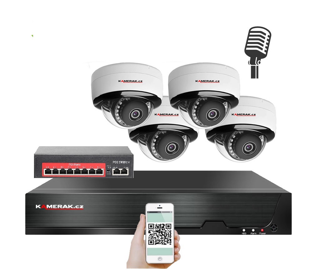 Digitální kamerový set IP XM-405B-Ext. 4MPx s externím PoE napájením značky KAMERAK.cz nabízí vizuální zabezpečení Vašeho domu, chaty, skladu obchodu a dalších prostor. Velmi jednoduchá instalace , kdy stačí pouze propojit samotné kamery s PoE switch a následně switch s NVR pomocí UTP kabelu a poté podle českého návodu v rekordéru načíst IP adresy kamer. Napájení kamer se provádí z PoE switche, společně s daty, pomocí UTP kabelu. Díky jednoduchému a intuitivnímu zapojení zvládnete instalaci dohledového systému svépomocí. Součástí kamerového setu jsou všechny potřebné komponenty pro zprovoznění (pro záznam je nutný pouze HDD, který není součástí balení). Při nákupu HDD společně s kamerovým setem Vám jej zdarma odborně nainstalujeme. Lze připojit záznamové zařízení pomocí síťového kabelu do Vašeho routeru a tím získáte vzdálený přístup a sledování obrazu kamer na Vašem telefonu (Android, iOS), tabletu nebo PC. Menu NVR je v českém jazyce a součástí balení je i český návod, díky tomu je ovládání kamerového systému velmi jednoduché.