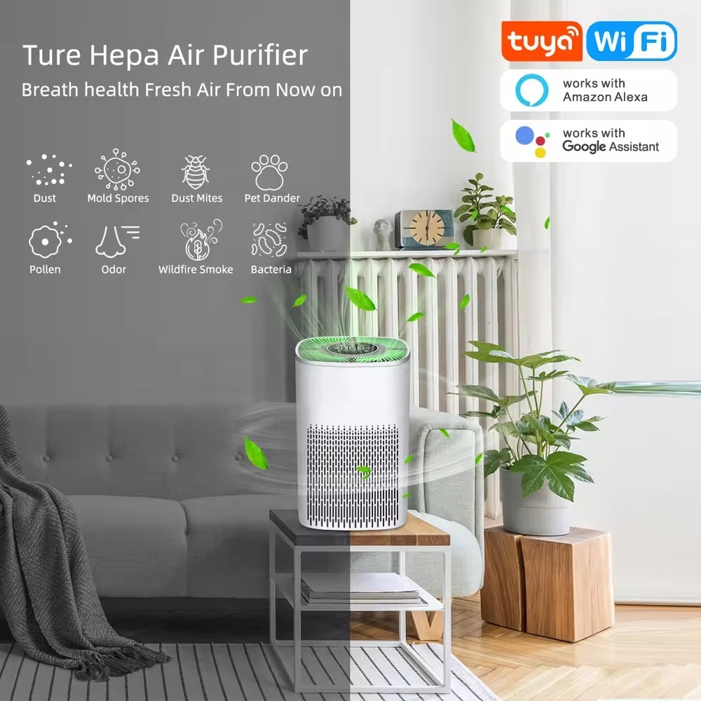 Aplikace Tuya Smart - jednoduché ovládání čističky - zapínání, vypínání, nastavení časového zapínání. Díky službám Alexa, Google Assistant lze čističku ovládat také hlasově. Pokud vlastníte další zařízení z chytré domácnosti Tuya Smart lze s čističkou nastavit tzv. scény - např. vypnutý Alarmový systém znamenající příchod člena domácnosti automaticky čističku zapne/vypne.