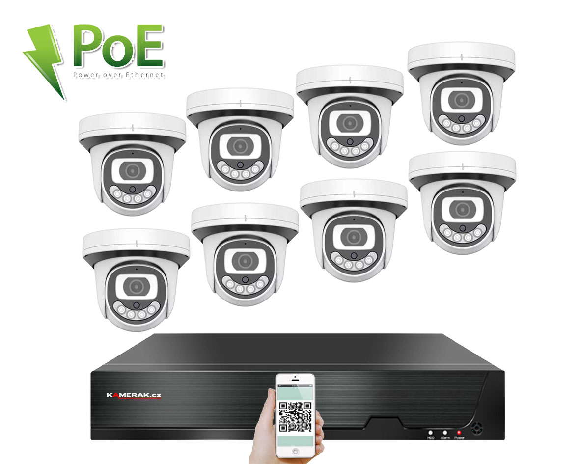 Digitální kamerový set 4K PoE IP XM-812D 8MPx značky KAMERAK.cz nabízí vizuální zabezpečení Vašeho domu, chaty, skladu obchodu a dalších prostor. Velmi jednoduchá instalace , kdy stačí pouze propojit samotné kamery s NVR pomocí UTP kabelu a následně podle českého návodu v rekordéru načíst IP adresy kamer. Napájení kamer se provádí, společně s daty, pomocí UTP kabelu přímo z NVR, tudíž není třeba řešit problematiku externího napájení. Díky jednoduchému a intuitivnímu zapojení zvládnete instalaci dohledového systému svépomocí. Součástí kamerového setu jsou všechny potřebné komponenty pro zprovoznění (pro záznam je nutný pouze HDD, který není součástí balení). Při nákupu HDD společně s kamerovým setem Vám jej zdarma odborně nainstalujeme. Lze připojit záznamové zařízení pomocí síťového kabelu do Vašeho routeru a tím získáte vzdálený přístup a sledování obrazu kamer na Vašem telefonu (Android, iOS), tabletu nebo PC. Menu NVR je v českém jazyce a součástí balení je i český návod, díky tomu je ovládání kamerového systému velmi jednoduché.