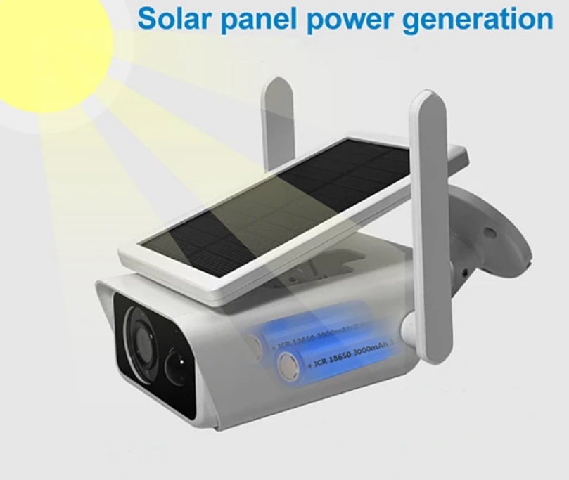 S podporou solárního dobíjení dvě nabíjecí baterie Li-ion typu 18650 dokáží kameru napájet po dobu až 3 měsíce (při 15 detekcích pohybu denně s 15s záznamem videa při každé detekci), poté stačí dobít baterie v nabíječce baterií ( není součástí prodeje). V případě vybití baterií lze nabít i adaptérem 5V min.1A. (pozor, nelze použít více, než 5V adaptér, aby nedošlo k poškození kamery)