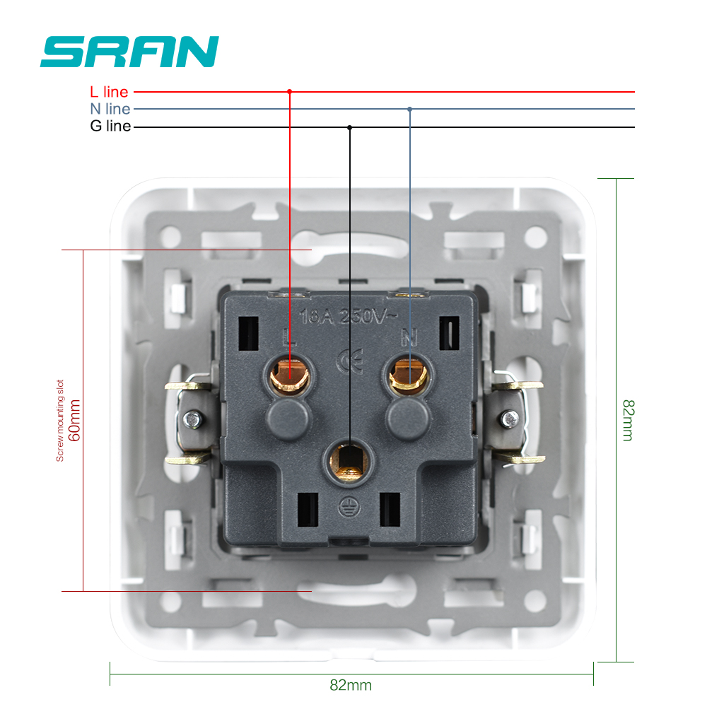 Kompletní zásuvka/dvojzásuvka SRAN v bílé/černé/stříbrné barvě je klasickou zásuvkou pro domovní i kancelářskou elektroinstalaci s montáží do elektroinstalační krabice 86*86*50mm(jednozásuvka) nebo 146*86*50mm (dvojzásuvka).