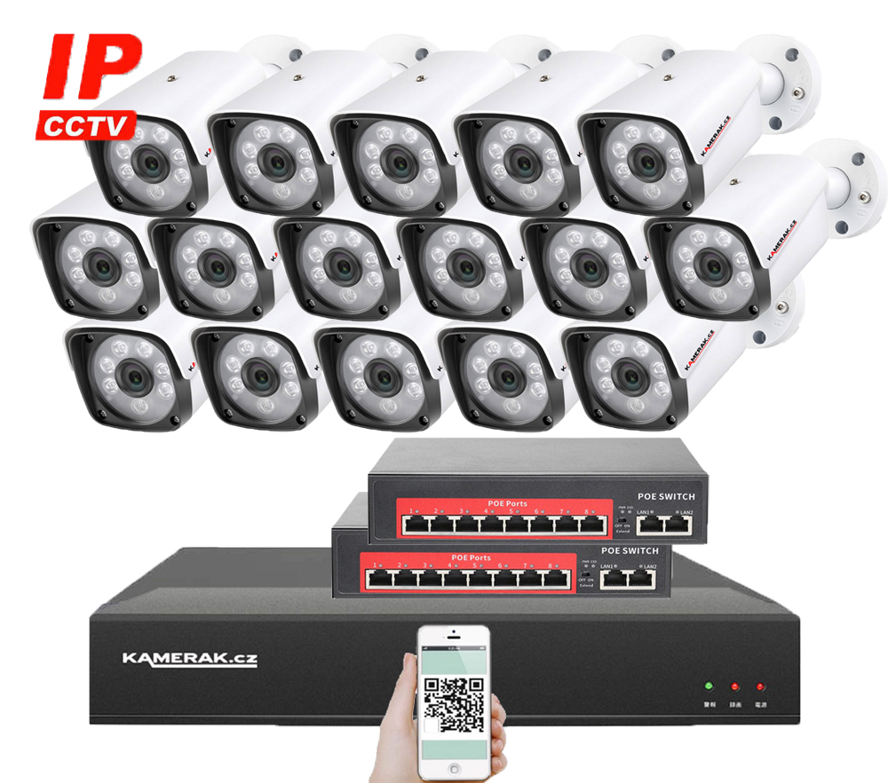 Digitální kamerový set IP XM-1601B-Ext. 4MPx s externím PoE napájením značky KAMERAK.cz nabízí vizuální zabezpečení Vašeho domu, chaty, skladu obchodu a dalších prostor. Velmi jednoduchá instalace , kdy stačí pouze propojit samotné kamery s PoE switch a následně switch s NVR pomocí UTP kabelu a poté podle českého návodu v rekordéru načíst IP adresy kamer. Napájení kamer se provádí z PoE switche, společně s daty, pomocí UTP kabelu. Díky jednoduchému a intuitivnímu zapojení zvládnete instalaci dohledového systému svépomocí. Součástí kamerového setu jsou všechny potřebné komponenty pro zprovoznění (pro záznam je nutný pouze HDD, který není součástí balení). Při nákupu HDD společně s kamerovým setem Vám jej zdarma odborně nainstalujeme. Lze připojit záznamové zařízení pomocí síťového kabelu do Vašeho routeru a tím získáte vzdálený přístup a sledování obrazu kamer na Vašem telefonu (Android, iOS), tabletu nebo PC. Menu NVR je v českém jazyce a součástí balení je i český návod, díky tomu je ovládání kamerového systému velmi jednoduché.