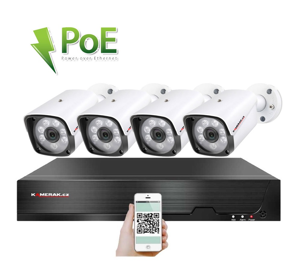 Digitální kamerový set PoE IP XM-401B 4MPx značky KAMERAK.cz nabízí vizuální zabezpečení Vašeho domu, chaty, skladu obchodu a dalších prostor. Velmi jednoduchá instalace , kdy stačí pouze propojit samotné kamery s NVR pomocí UTP kabelu a následně podle českého návodu v rekordéru načíst IP adresy kamer. Napájení kamer se provádí, společně s daty, pomocí UTP kabelu přímo z NVR, tudíž není třeba řešit problematiku externího napájení. Díky jednoduchému a intuitivnímu zapojení zvládnete instalaci dohledového systému svépomocí. Součástí kamerového setu jsou všechny potřebné komponenty pro zprovoznění (pro záznam je nutný pouze HDD, který není součástí balení). Při nákupu HDD společně s kamerovým setem Vám jej zdarma odborně nainstalujeme. Lze připojit záznamové zařízení pomocí síťového kabelu do Vašeho routeru a tím získáte vzdálený přístup a sledování obrazu kamer na Vašem telefonu (Android, iOS), tabletu nebo PC. Menu NVR je v českém jazyce a součástí balení je i český návod, díky tomu je ovládání kamerového systému velmi jednoduché.