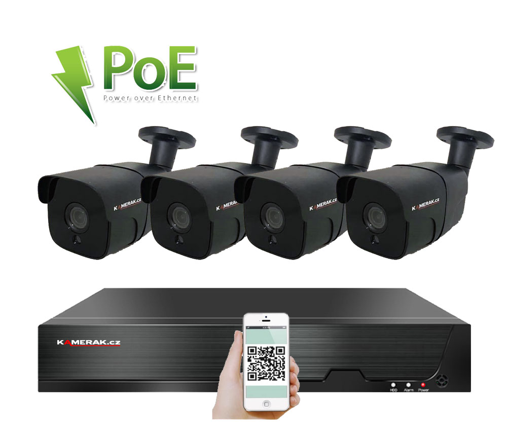 Digitální kamerový set PoE IP XM-407B 4MPx značky KAMERAK.cz nabízí vizuální zabezpečení Vašeho domu, chaty, skladu obchodu a dalších prostor. Velmi jednoduchá instalace , kdy stačí pouze propojit samotné kamery s NVR pomocí UTP kabelu a následně podle českého návodu v rekordéru načíst IP adresy kamer. Napájení kamer se provádí, společně s daty, pomocí UTP kabelu přímo z NVR, tudíž není třeba řešit problematiku externího napájení. Díky jednoduchému a intuitivnímu zapojení zvládnete instalaci dohledového systému svépomocí. Součástí kamerového setu jsou všechny potřebné komponenty pro zprovoznění (pro záznam je nutný pouze HDD, který není součástí balení). Při nákupu HDD společně s kamerovým setem Vám jej zdarma odborně nainstalujeme. Lze připojit záznamové zařízení pomocí síťového kabelu do Vašeho routeru a tím získáte vzdálený přístup a sledování obrazu kamer na Vašem telefonu (Android, iOS), tabletu nebo PC. Menu NVR je v českém jazyce a součástí balení je i český návod, díky tomu je ovládání kamerového systému velmi jednoduché.