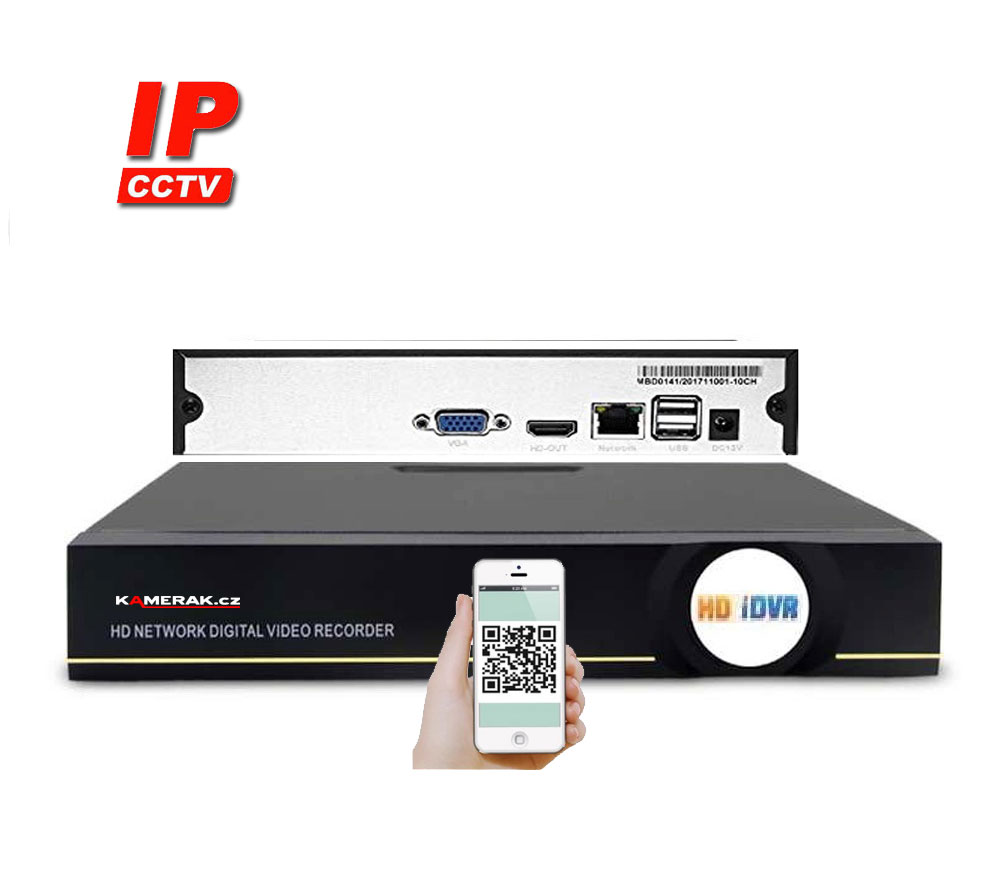 IP kamerový set s externím PoE pro jednoduché sestavení svépomocí. NVR v sobě nemá instalováno napájení kamer, které je řešeno pomocí switch. Lze tedy umístit switch (napájení IP kamer) na jiné místo než rekordér, který se následně připojuje k obrazovce/internetu.