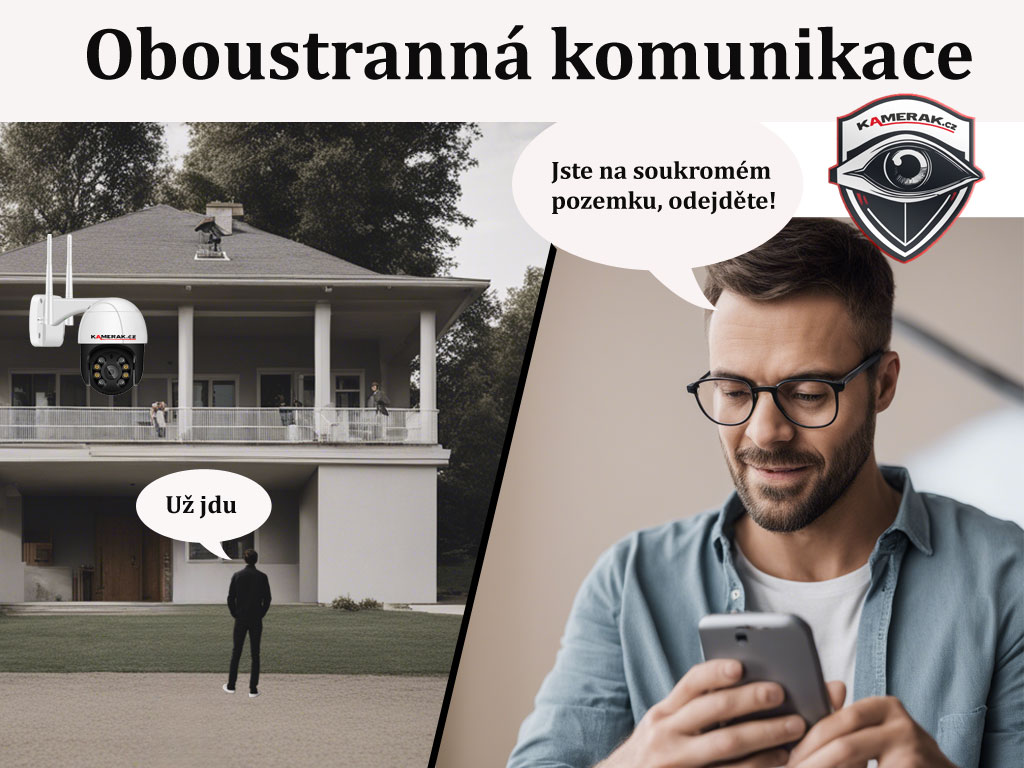 Kamerá má mikrofon i reproduktor, tudížje možná oboustranná komunikace pomocí mobilní aplikace