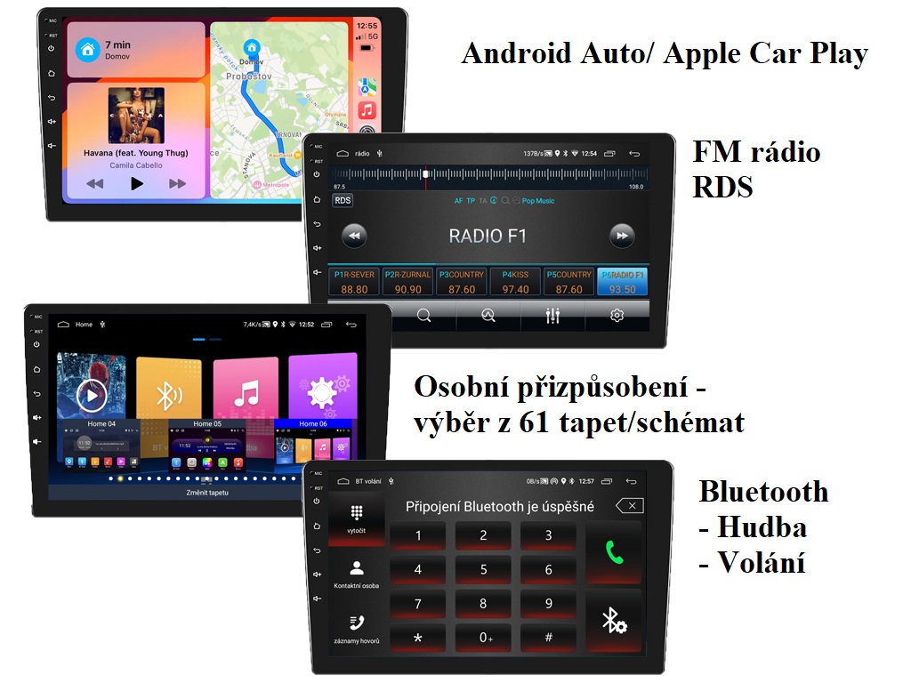- FM rádio: Poslouchejte své oblíbené rádiové stanice. (Podporda RDS)