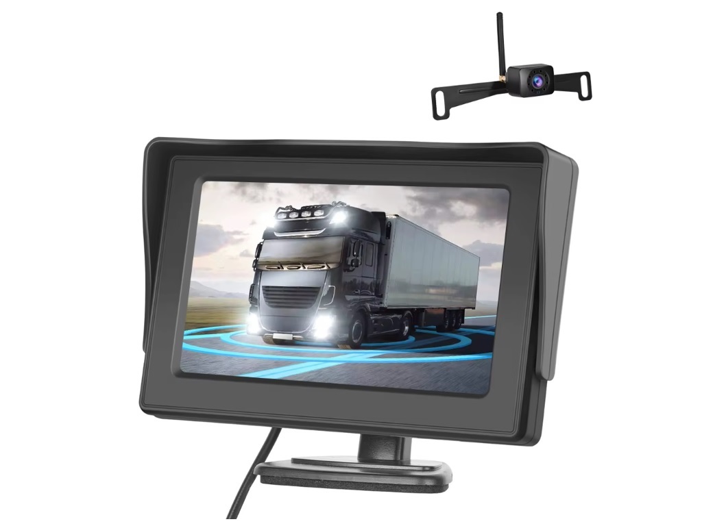 WiFi parkovací set A3164 obsahující monitor o velikosti 4,3" a parkovací kameru s nočním viděním s držákem SPZ je kompletní sada, která vám poskytne jasný přehled o dění za vozidlem. Díky bezdrátovému přenosu, vodotěsné kameře a displeji s vysokým rozlišením je instalace snadná a obraz ostrý za všech podmínek.