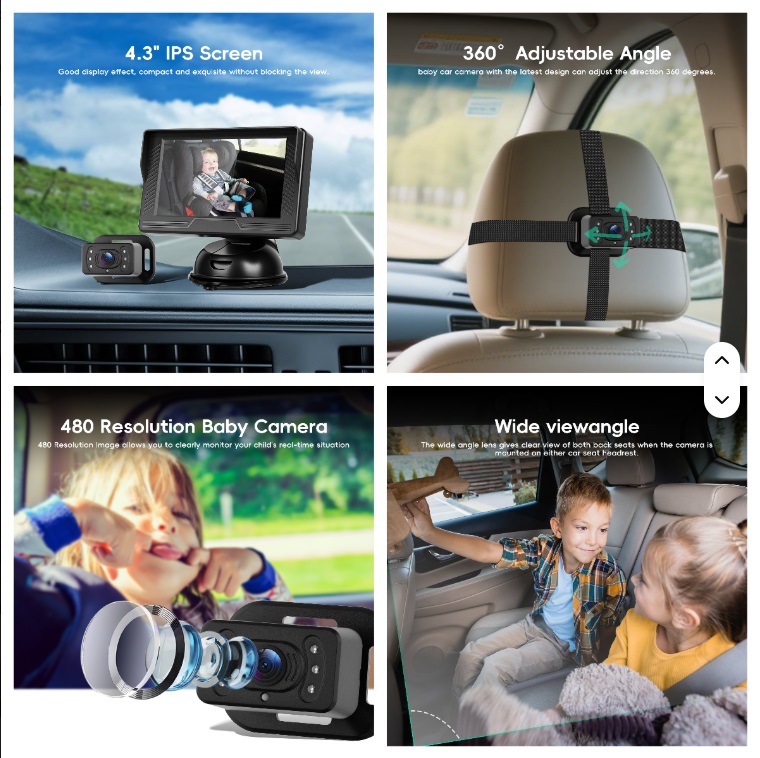 Dětská autokamera s 4,3" IPS monitorem – bezpečný dohled nad dítětem během jízdy