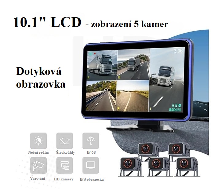 Parkovací set TRUCK A3696, 10,1" HD displej + 5x parkovací kamera - Cena: 5740 Kč