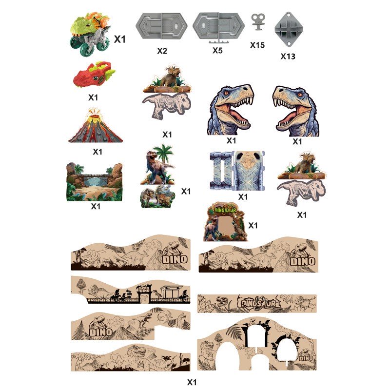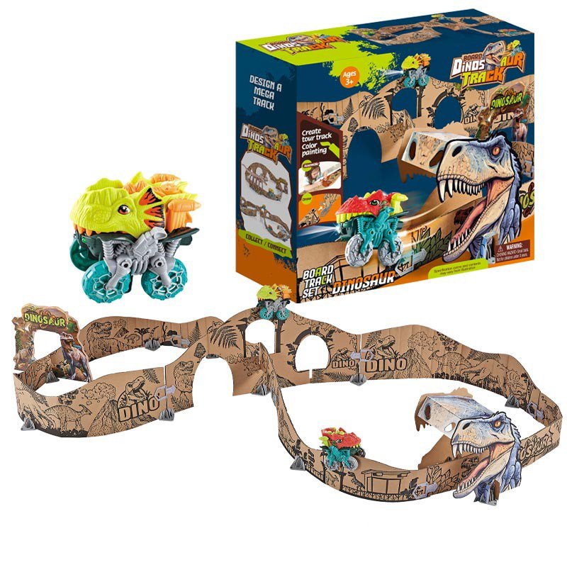 Objevte zábavu v pravěku! Tento kreativní set přináší dětem možnost postavit si vlastní dinosauří závodní dráhu z pevného kartonu. Součástí je 1 autíčko ve tvaru dinosaura a celkem 7 ks doplňků, které vytvoří originální park plný prehistorických dobrodružství.