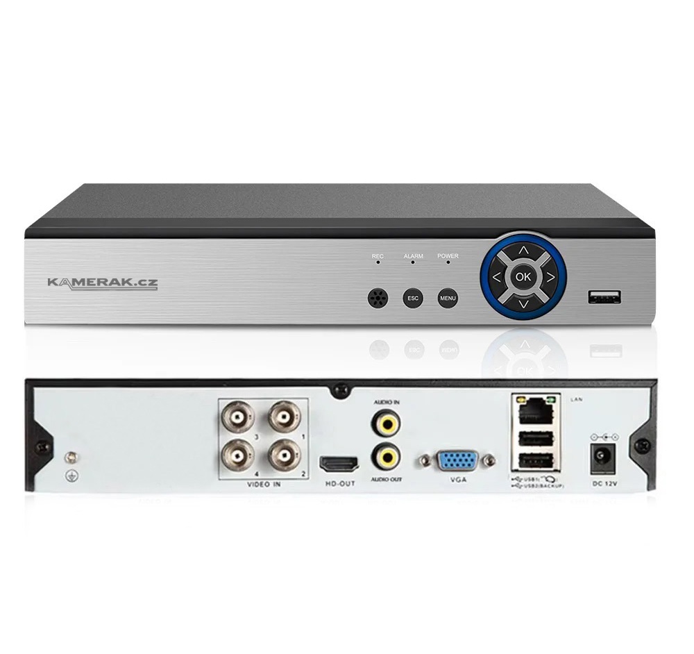 Hybridní AHD rekordér umožňující připojení jak běžných analogových kamer, tak analogových AHD kamer 720P/960P/1080P/5MPx, nebo IP kamer 1080p. K dispozici jsou 4 analogové vstupy BNC, kam lze připojit AHD kamery s rozlišením až 5MPx, ale také běžné analogové kamery. Rekordér lze přepnout do režimu s IP kamerami, pak lze připojit až 4 HD IP kamery. Rekordér lze osadit pevným SATA diskem o kapacitě až 12TB.