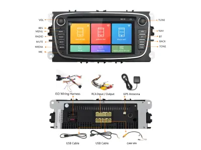 Autoradio 7" Q3196KT s Android 8.1, Bluetooth, GPS a WiFi, ideální pro Ford Focus, Mondeo, C-MAX, nabízí špičkovou zábavu a navigaci.