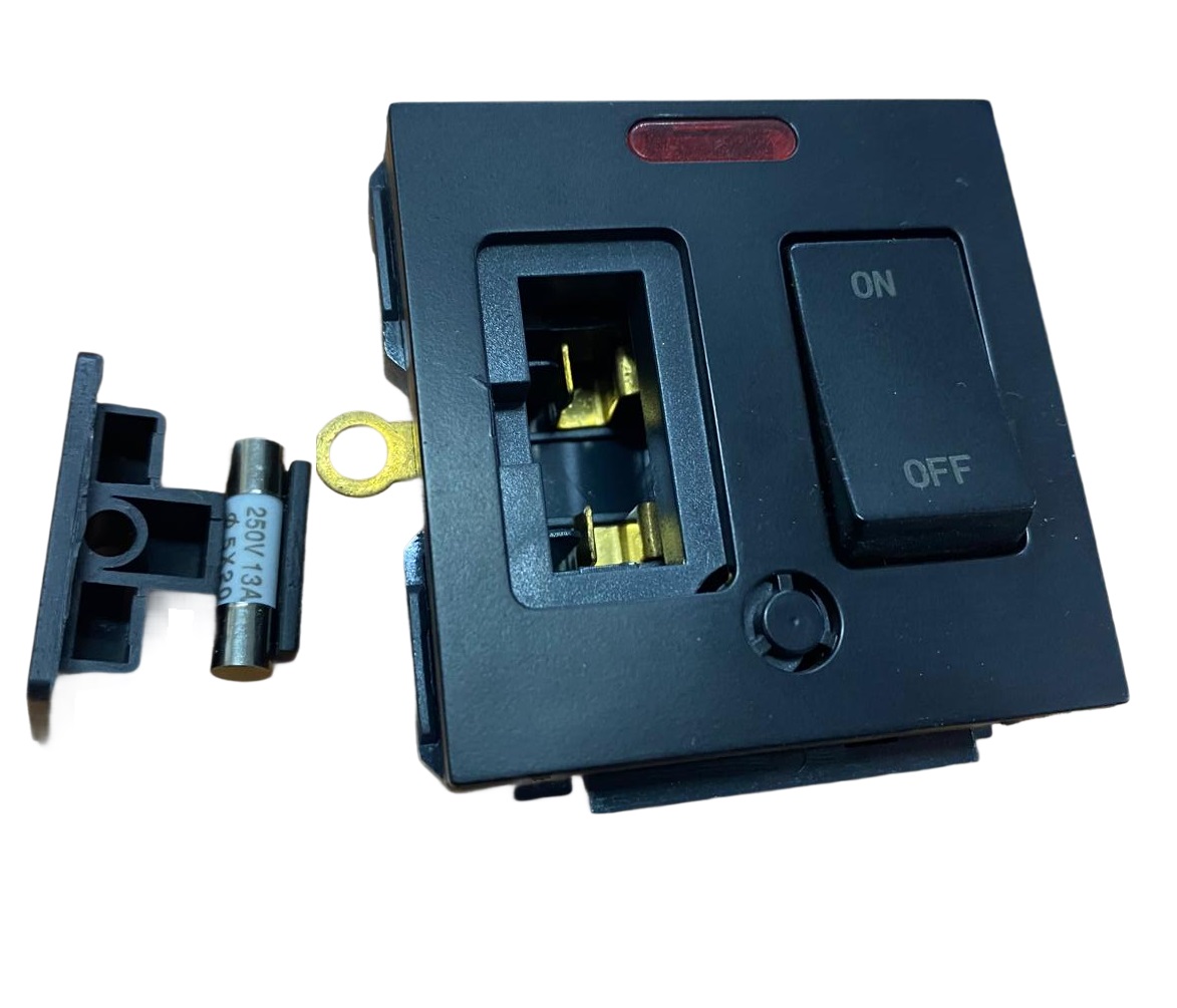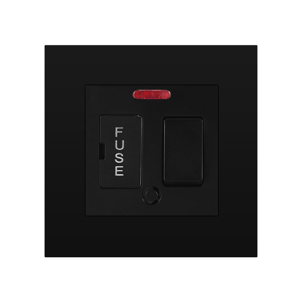 Pojistkový spínač s kontrolkou 13A včetně rámečku, plast černý