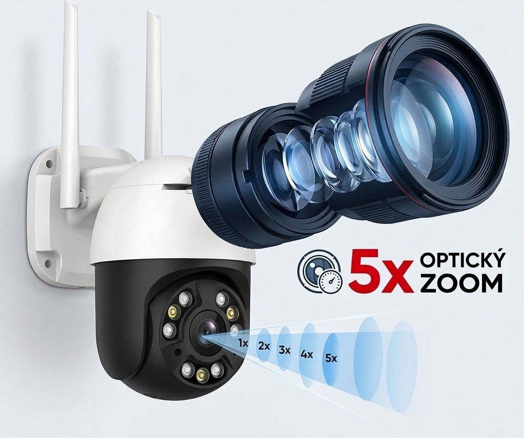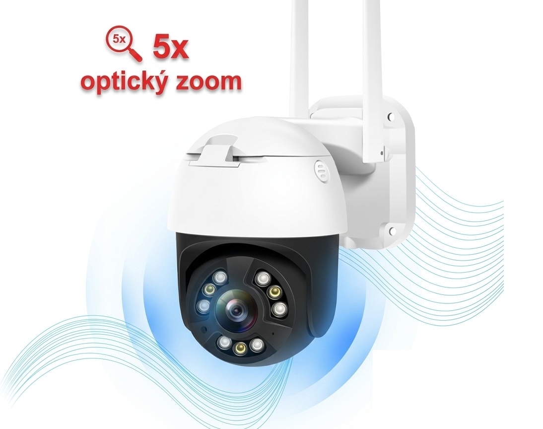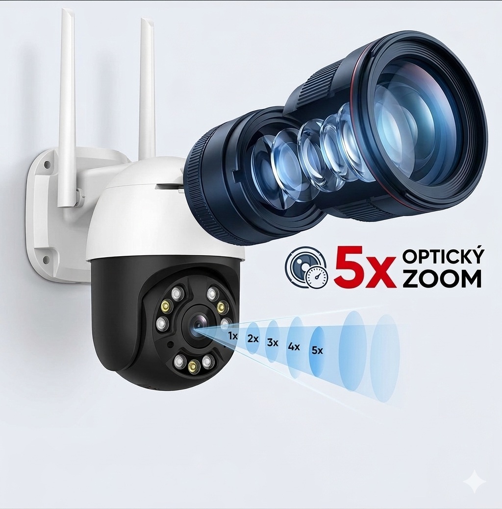 Zabezpečte svůj domov venkovní otočnou kamerou s pětinásobným optickým zoomem, barevným nočním viděním a obousměrným zvukem. Ovládejte přes mobil pomocí aplikace Icsee v českém jazyce a získejte upozornění při detekci pohybu. Toto je ideální kamera na dům i prodejnu-