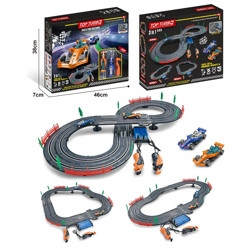 Dráha má realistické zatáčky, rovinky a nadjezdy, které přinesou skutečný závodní zážitek. Stačí zapojit, postavit a závod může začít!