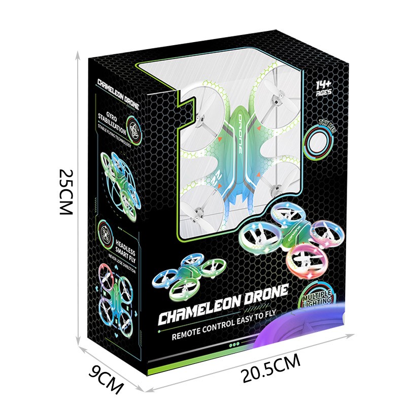 Zažijte nekonečnou zábavu s Chameleon Dron – moderním mini dronem, který kombinuje atraktivní vzhled, snadné ovládání a skvělé letové vlastnosti. Díky barevnému LED podsvícení je dron nejen dobře viditelný, ale také vytváří úchvatný světelný efekt při každém letu.