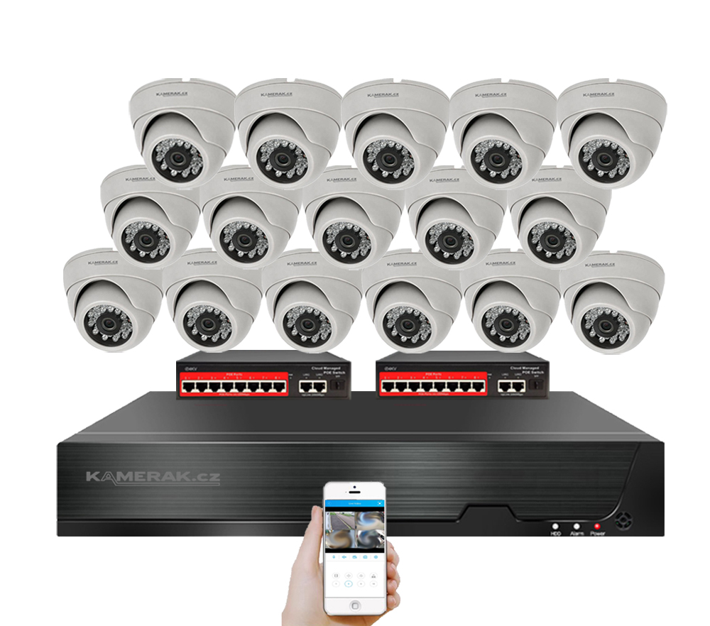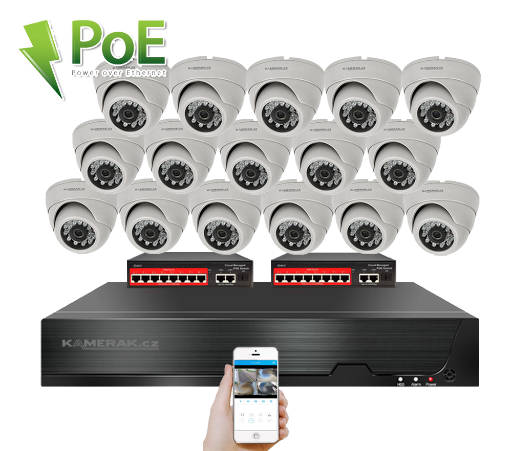 IP 16 kamerový set s externím PoE poskytuje jednoduché a efektivní zabezpečení vašich prostor s intuitivní instalací.